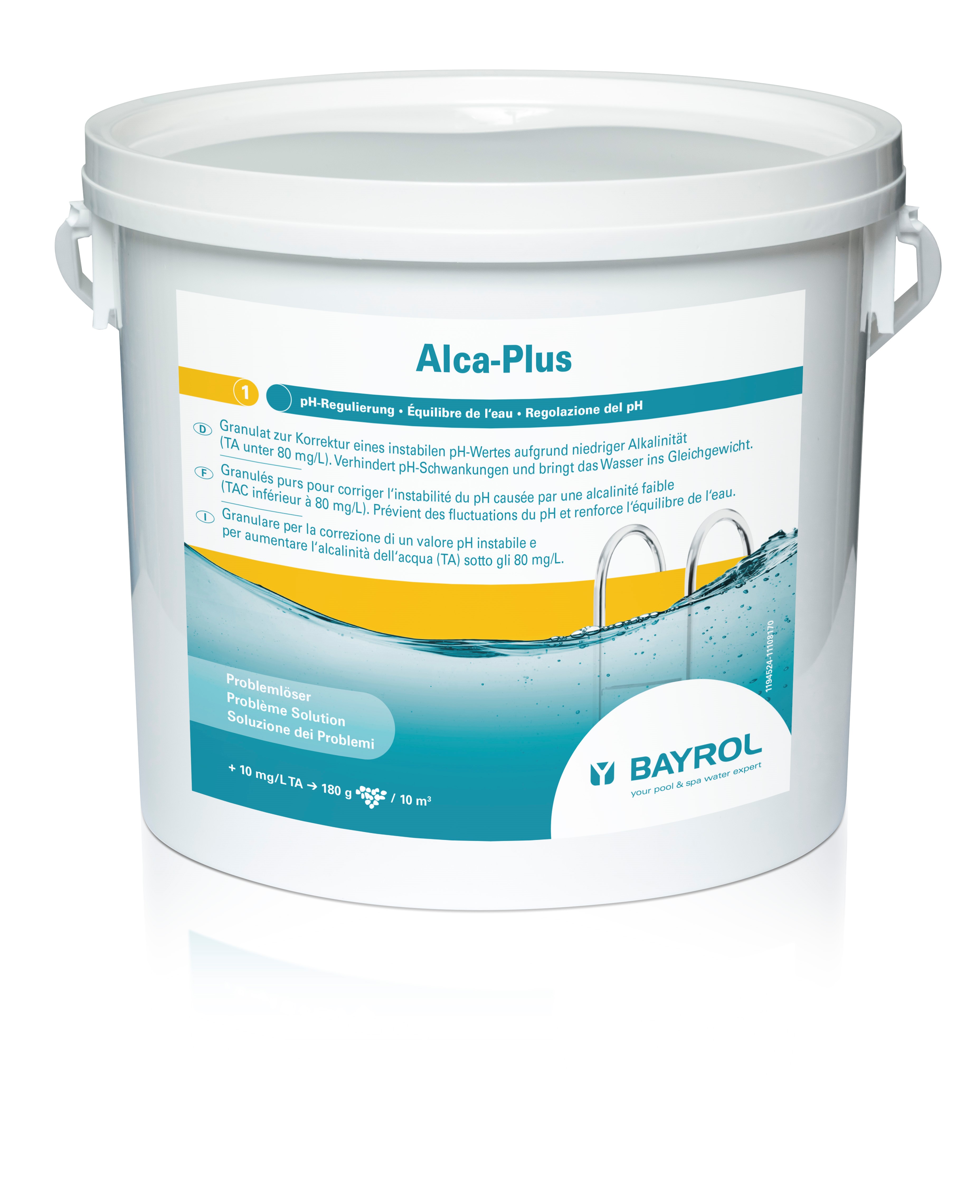 Erhöht die Karbonathärte (TAC) und verhindert grosse pH-Wert-Schwankungen. Der optimale TAC-Wert (Alkaninität) liegt zwischen 80-120ppm (100ppm = 10°fH = 5.5°fH). 300g Alcaplus auf 10 m3 erhöht den Wasserhärtegrad um 1°(respektive 1,8°fH).