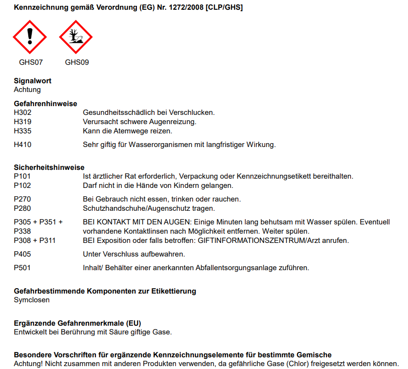 Schnelllösliche Chlortablette 17 g mit hohem Aktivchlorgehalt zur Stossdesinfektion des Schwimmbadwassers.- mit Clorodor Control KapselHinweis: Biozide sicher verwenden. Vor Gebrauch stets Kennzeichnung und Produktinformationen lesen.