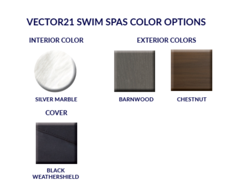 | Optionen: | Starlight (LED multicolored lights), Exterior Steps (Left or right side, Barnwood or Chestnut), Fitness Package: Resistance & Rowing Kit, swim tether, 2 Cover Companions, Bluetooth aufio (2 surface speakers, sub woofer), Ozonator (Corona discharge) |