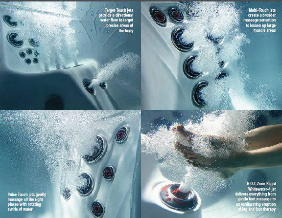 Der Euphoria Crown von Marquis Spa bietet königliche Platz. Im symmetrischen Layout sind sieben mehrstufigen Sitze angeordnet. Darunter zwei extra tiefe Therapiesitze, die nebeneinander positioniert und mit Ganzkörpermassage zum entspannen einladen. Jeder Sitz kann den explosiven Whitewater-4-Jet für eine leistungsstarke Bein- und Fusstherapie erreichen. Fünf H.O.T. Zonen sorgen dafür, dass Sie und Ihre Gäste grenzenlose Euphorie geniessen können!