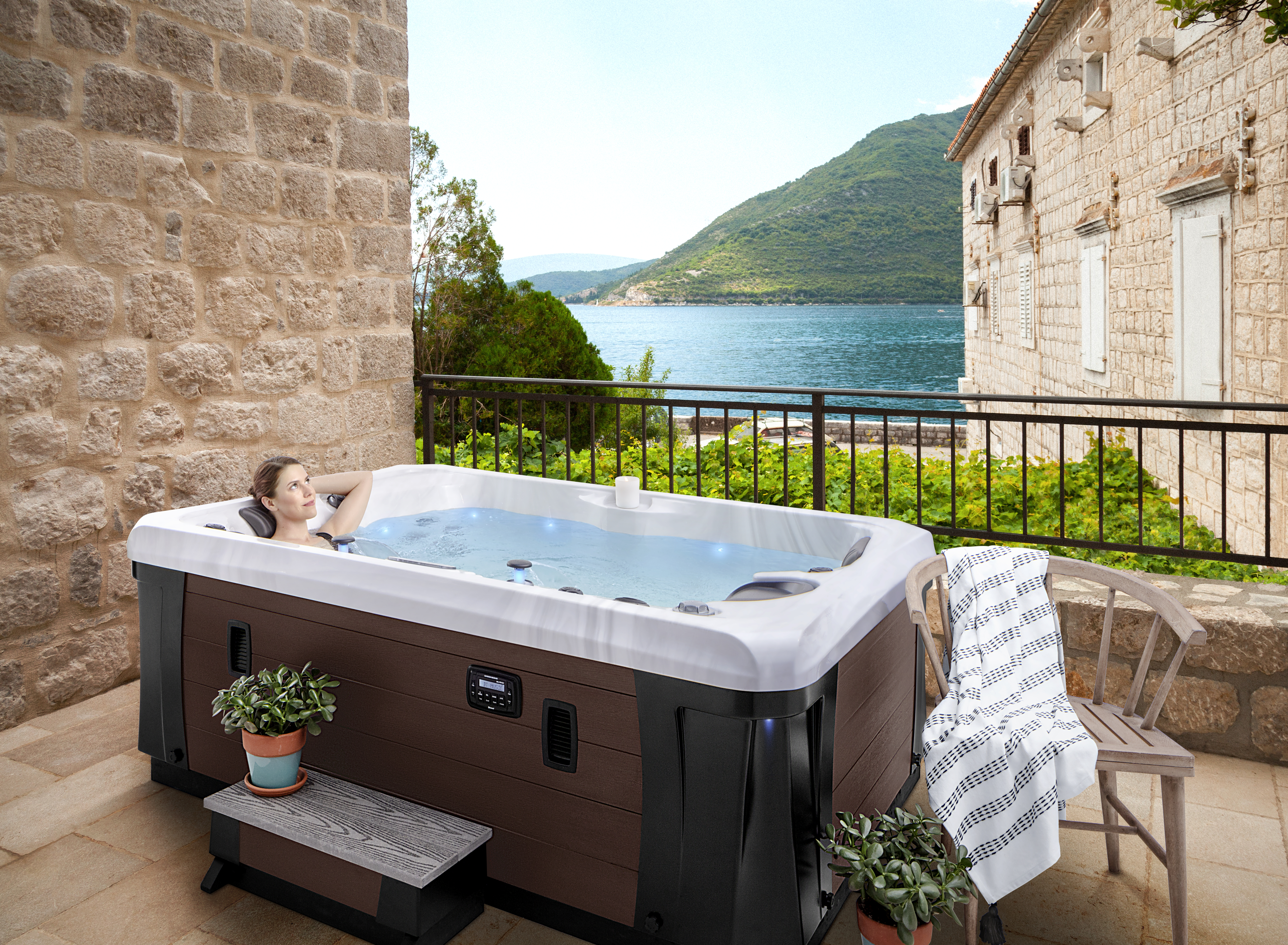 Der Nashville Elite-Whirlpool bietet den Luxus für einen Day-Spa in Ihrem Garten. Es ist ein Premium-Whirlpool für zwei Personen in dem Sie sich auf den Sitzen nebeneinander unterhalten können. Ein zusätzlicher Therapiesitz bietet einen weiteren Platz zum Entspannen.