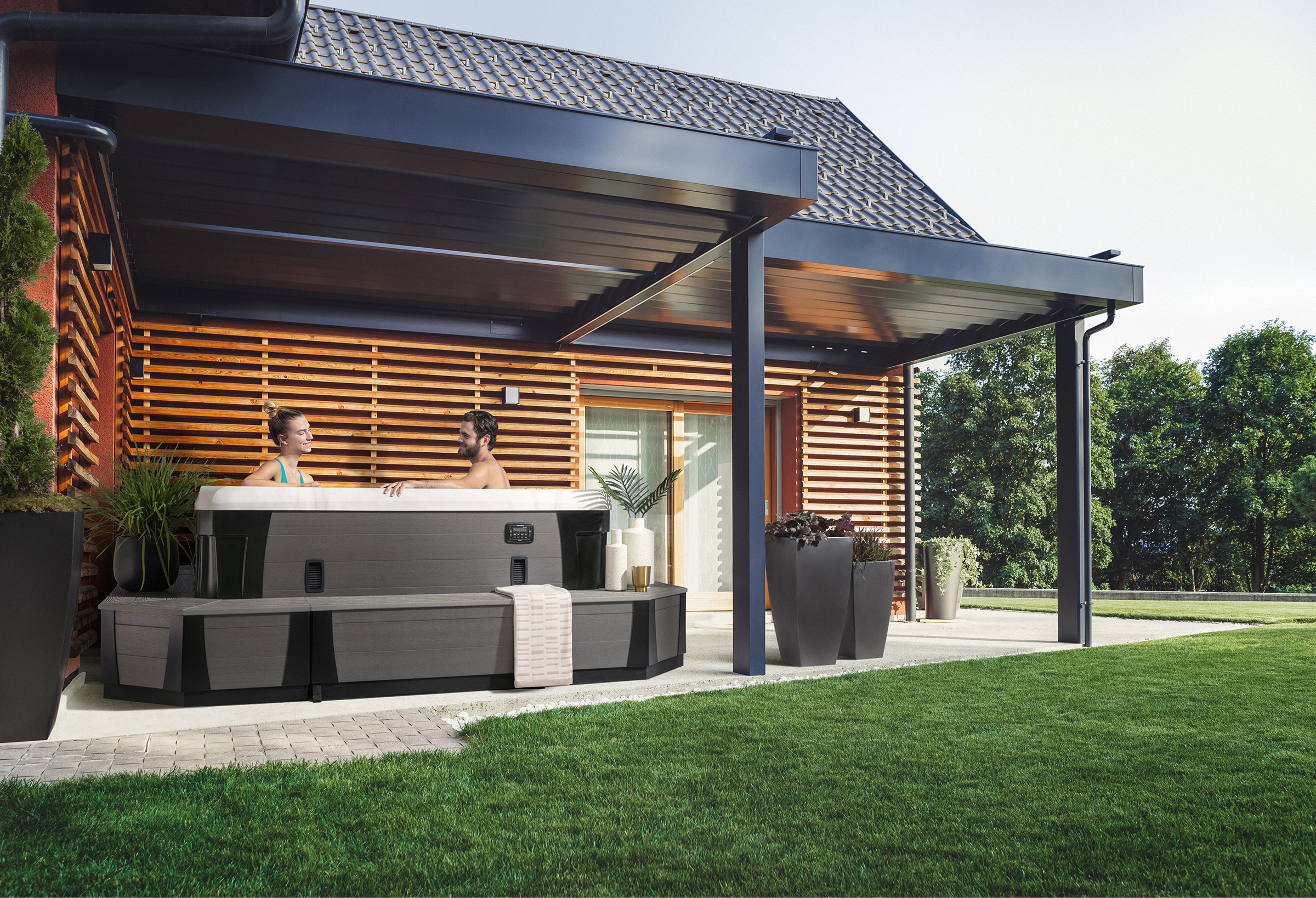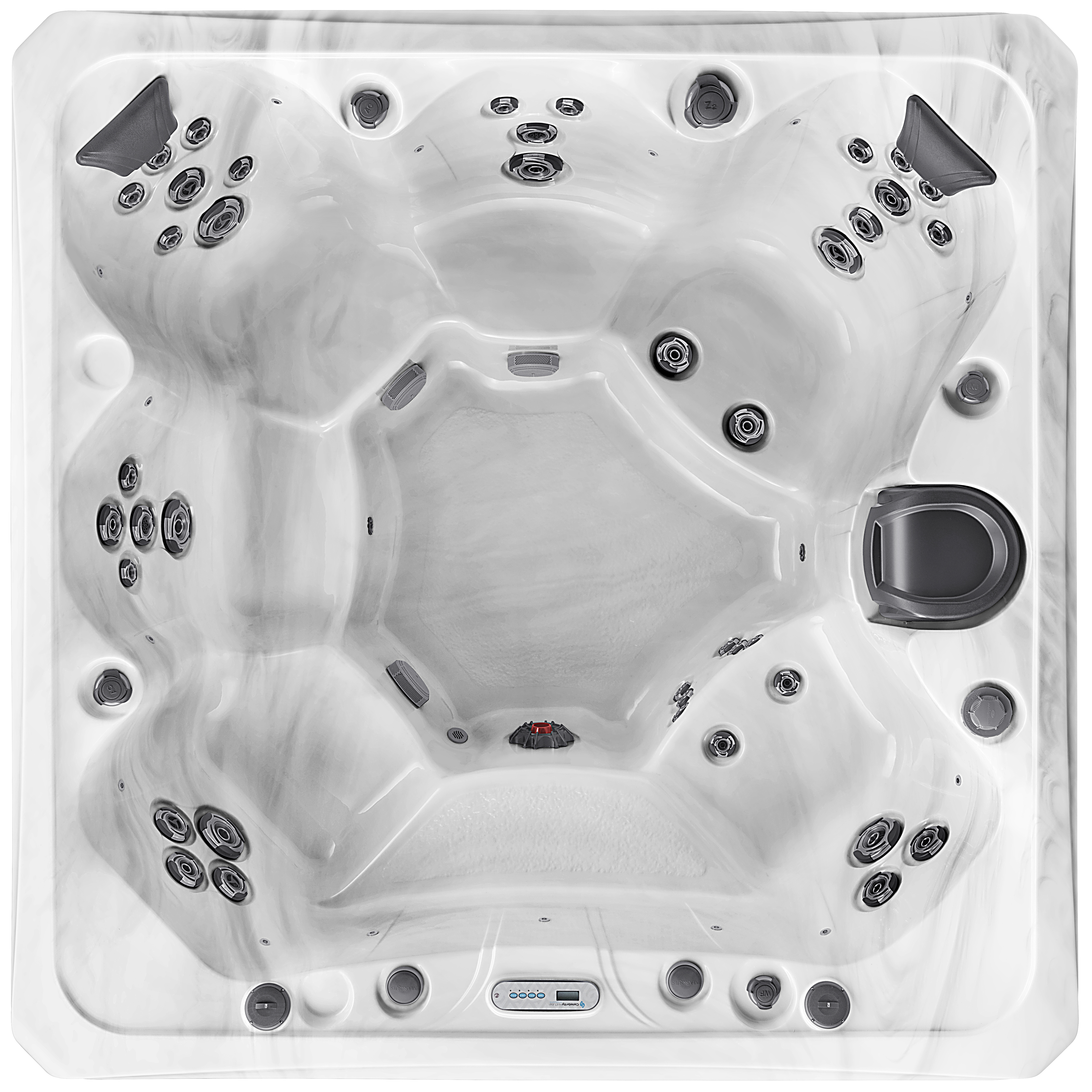 Die einzigartigen Sitzpositionen des Vegas Elite-Whirlpools bieten Platz für sechs Personen und umfassen zwei tiefe Therapie-Sitze, zwei seitliche Sitze, einen mittleren Sitz, einen extrem tiefen Sitz und einen zusätzlichen hohen Sitz der sich als Einstieg eignet. Der Focus liegt auf der "explosiven" Beintherapie und der Whitewater-4-Düse!